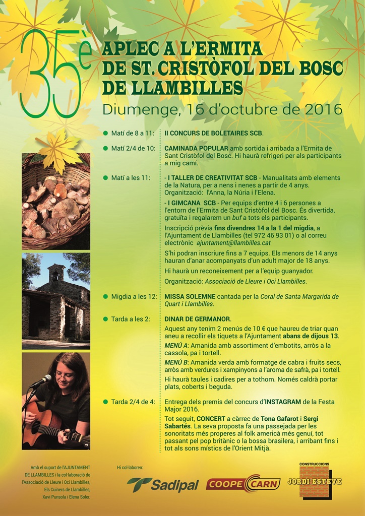 II Concurs de boletaires, caminada popular,I taller de creativitat SBC, I gimcana SBC, Missa, dinar de germanor i concert amb Tona Gafarot i Sergi Sabartés.