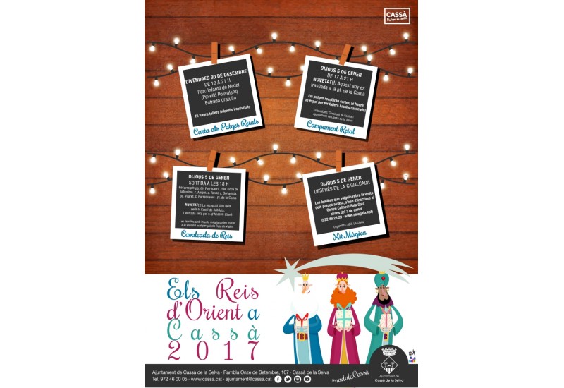 Els tres Reis han avisat que vindran acompanyats d'una comitiva formada per 200 patges. L'hora prevista és a les 6 de la tarda, però una hora abans ja hi haurà patges acampats a la plaça de la Coma, que recolliran cartes. El discurs del Reis serà a la Coma i la recepció al Casal de Jubilats. Han demanat precaució amb les carrosses i que avui es vagi a dormir aviat.
