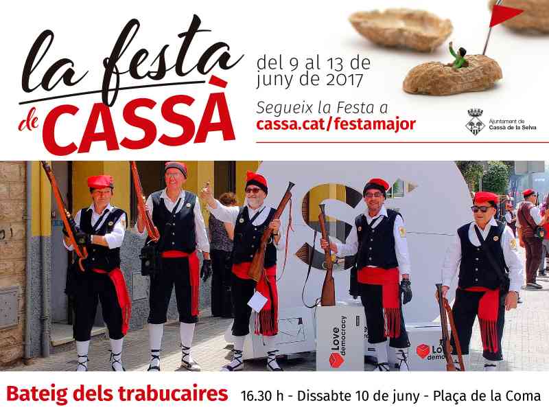 La Festa Major de Cassà de la Selva començarà divendres vinent, dia 9 de juny amb la Nit dels Músics, un acte genuïnament cassanenc en el que aquest any hi participaran més de 75 instrumentistes de cobla. Entre les novetats de la Festa Major 2017 hi ha el Bateig dels Trabucaires i "L'Ensierru de la Mare de Déu de les Sogues", actes que es faran el dissabte 10 a la tarda, o el trasllat de la Serenata de la Selvatana del Polivalent a la plaça de la Coma, que tindrà lloc el dilluns 12 a les 20h.