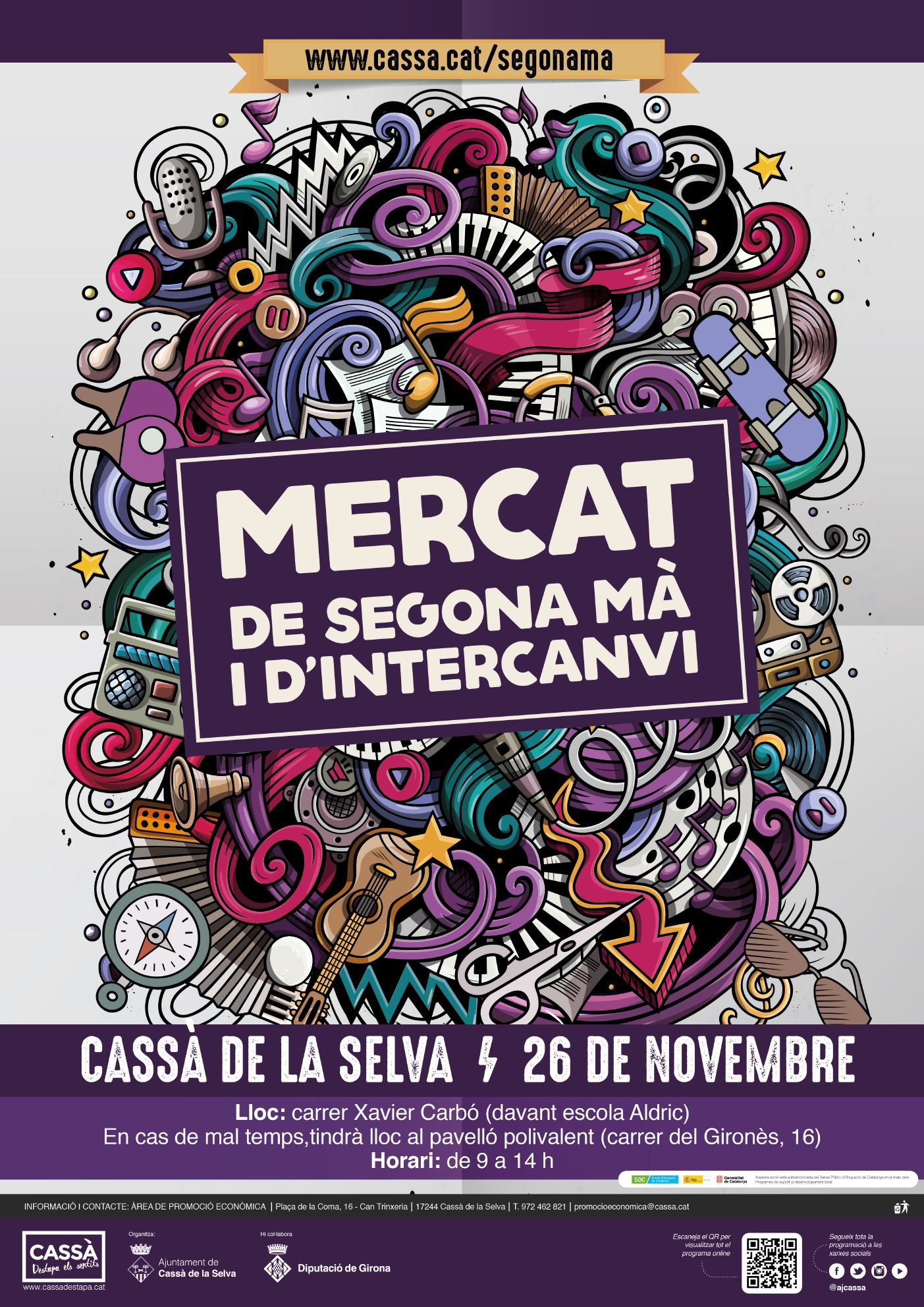 El Mercat de Segona Mà i d'Intercanvi és un punt de trobada de diverses persones amb iniciatives favorables a les 4R: reciclar, reduïr, reparar i reutilitzar. Se celebrarà el dia 26 de novembre a Cassà de la Selva.