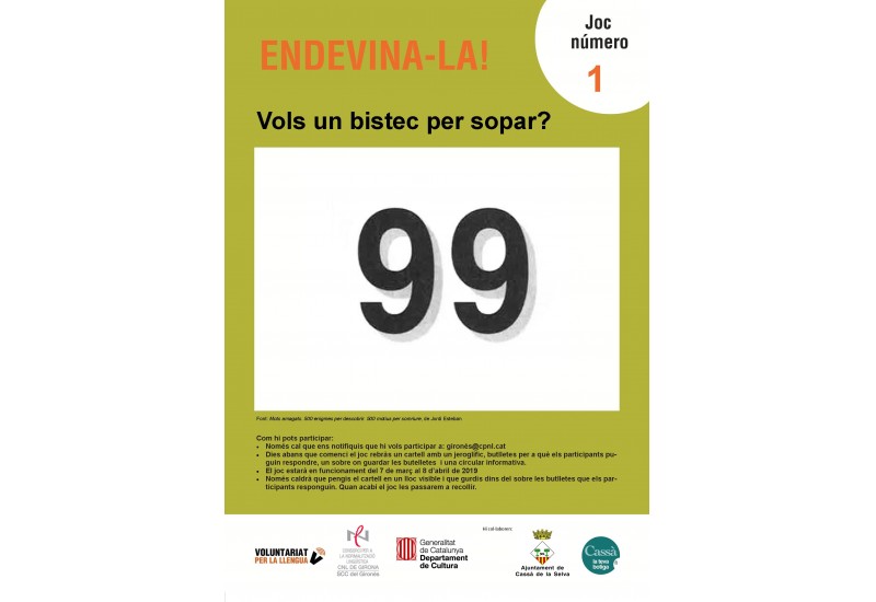 El Consorci per a la Normalització Lingüística (CpNL) impusa el joc de llengua Endevina-la!, que consisteix a resoldre jeroglífics, i que farà jugar a tothom del 7 de març al 8 d’abril.