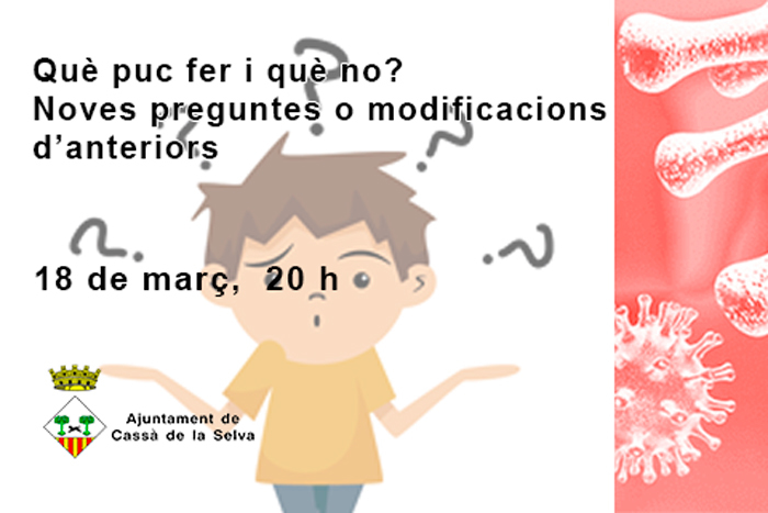 S'han actualitzat les preguntes i respostes sobre les restriccions d'activitats pel COVID-19 a Catalunya per part del Centre de Coordinació operativa de Catalunya CECAT.