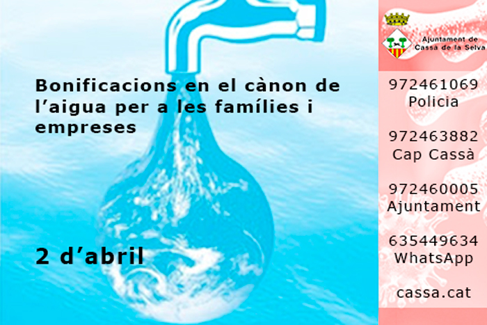 • Reducció universal del 50% del cànon de l’aigua per als usuaris domèstics.