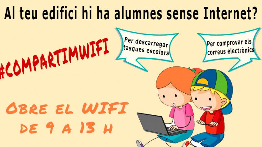 L’Ajuntament de Cassà de la Selva s’ha sumat a la campanya #CompartimWifi, que pretén promoure la igualtat d’oportunitats i permetre que tot l’alumnat tingui accés a internet. Per aquest motiu es fa una crida la ciutadania de Cassà a obrir cada dia de 9 a 13h el wifi del domicili per tal que els infants o joves que no disposen d’accés a la xarxa puguin dur a terme les seves activitats educatives i de lleure durant aquests dies de confinament. D’aquesta forma, a banda de descarregar-se les tasques escolars, també podran comprobar el correu electrònic i conectar-se amb l’exterior. Per tal d’informar als veïns i veïnes es pot deixar un avís a la porta de casa o a l’ascensor del bloc on residiu.