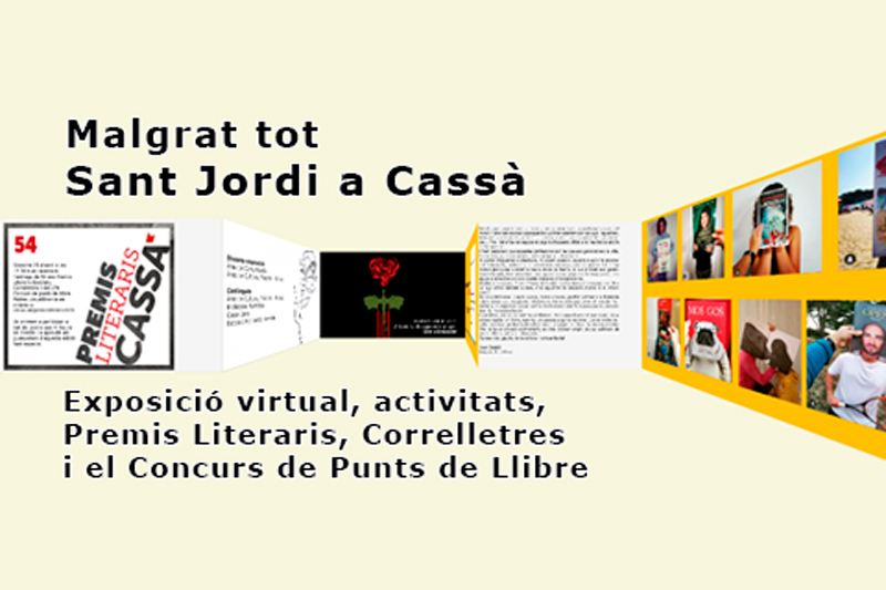 Així mateix, actes destacats del Sant Jordi a Cassà, com són l'entrega de premis del concurs Correlletres, els Premis Literaris i el Concurs de Punts de Llibre, es faran a través de Youtube el proper dissabte 25 d’abril a 2/4 de 6 de la tarda.