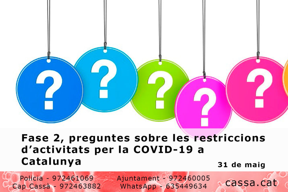 Amb l’entrada en vigor de la fase 2 del desconfinament continua vigent l’estat, però s’han introduït les següents modificacions respecte a la fase anterior: