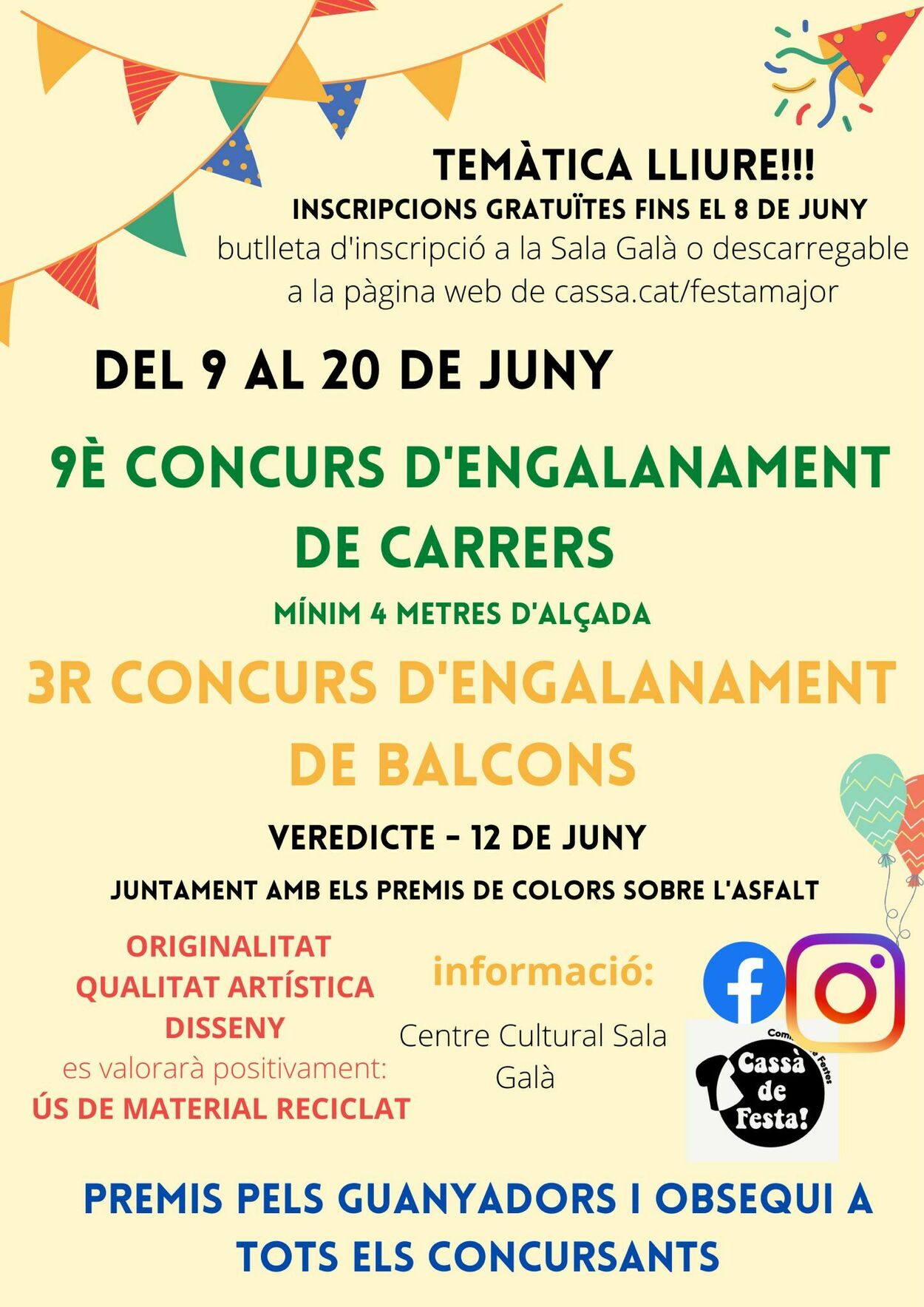 La Comissió de Festes de Cassà ha convocat el 9è concurs d'engalanament de carrers i el 3r concurs d'engalanament de balcons amb motiu de la Festa Major que tindrà lloc del 10 al 14 de juny.