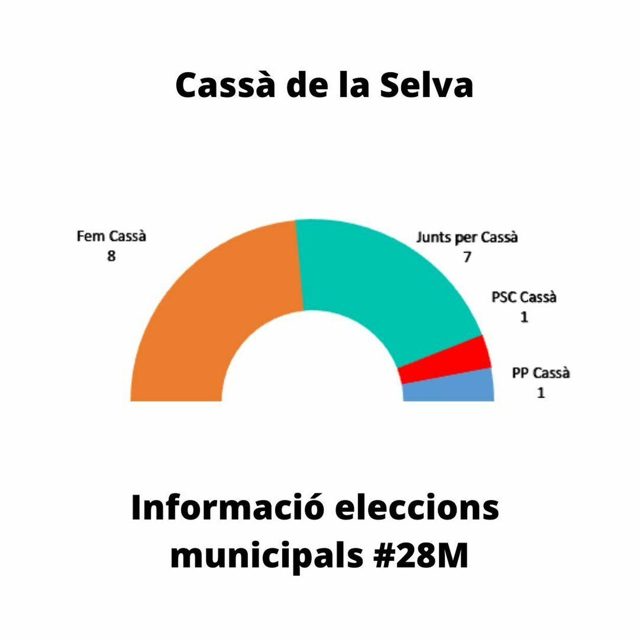 Fem Cassà, la formació liderada per Pau Presas, aconsegueix el 45,22% dels vots (vuit regidors).