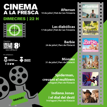 - 24 de juliol: "Barbie” (Parc de l’Estació). La gran triomfadora a la taquilla de l’any passat és una comèdia colorista i un sorprenent al·legat feminista que ofereix múltiples lectures.
