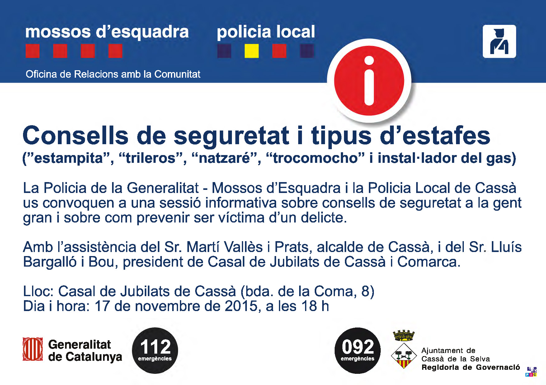 Avui, xerrada sobre com prevenir estafes, al Casal de Jubilats