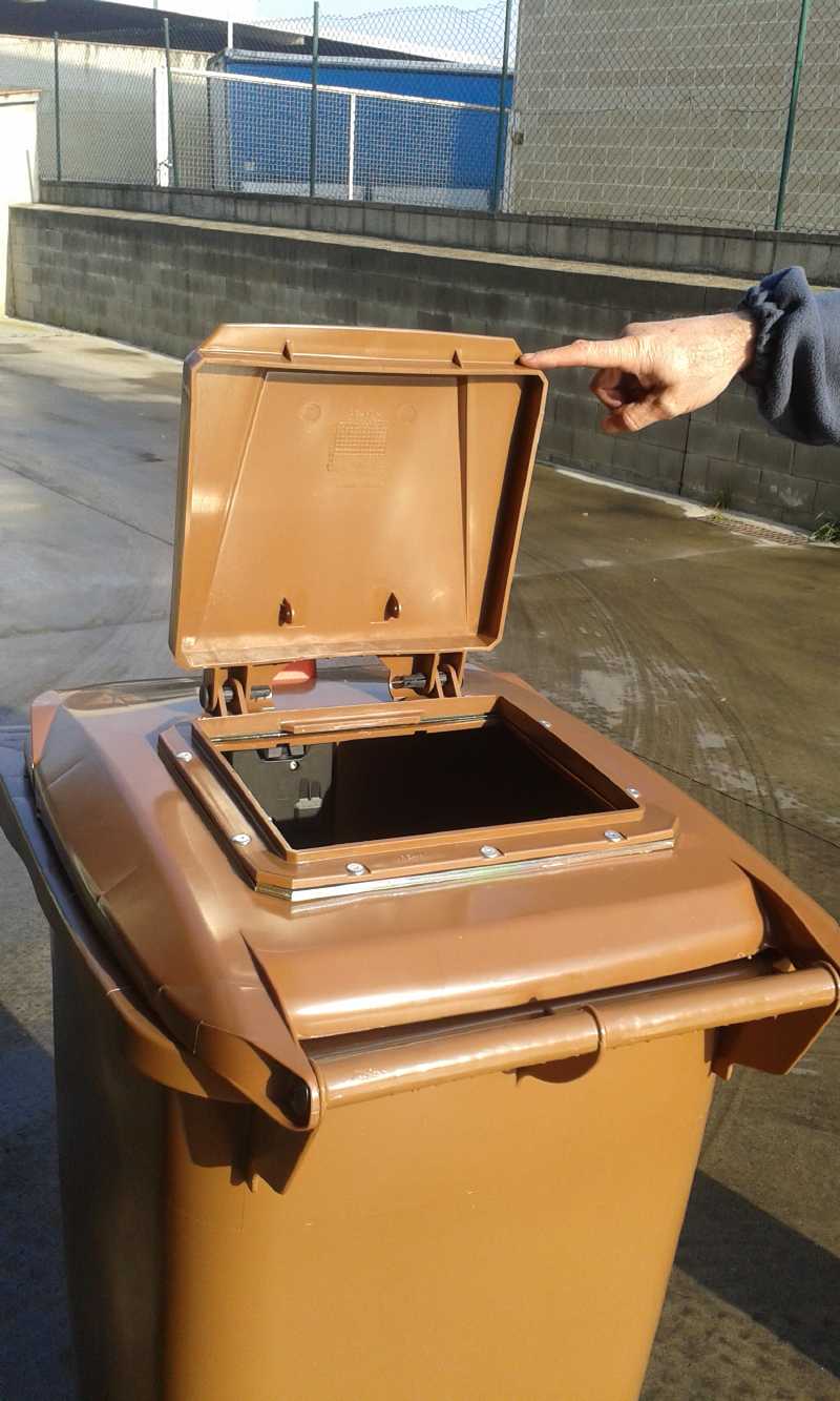 Els nous contenidors compten amb una tapa per fer la recollida normal i una altra de superior més petita que està pensada perquè s’hi puguin posar les bosses amb restes de menjar de la cuina i altres restes vegetals. D’aquesta manera, s’evita que s’hi aboquin bosses més grans amb una major probabilitat de contenir elements que no han d’anar a la fracció orgànica.