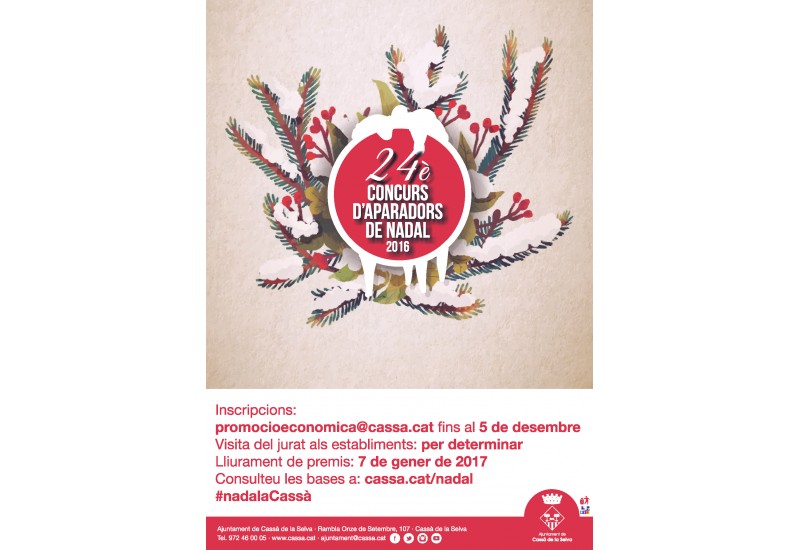 Les inscripcions es poden fer fins al 5 de desembre al correu electrònic Aquesta adreça de correu-e està protegida dels robots de spam.Necessites Javascript habilitat per veure-la.. El lliurament de premis tindrà lloc el 7 de gener de 2017. Serà imprescindible que els participants introdueixin algun element relacionat amb el suro als seus aparadors.
