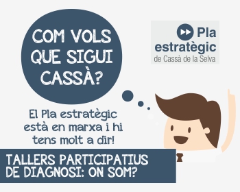 El Pla estratègic té per objectiu generar una anàlisi reflexiva sobre la situació actual del poble i el seu entorn, que serveixi per definir quina estratègia es vol seguir als propers anys. Es faran tallers els dies 2, 9 i 16 de febrer sobre temes socials, econòmics i territorials. Tots els tallers tindran lloc a l'espai jove l'Escorxador a les 7 de la tarda. Per participar-hi cal inscriure's al web cassa.cat