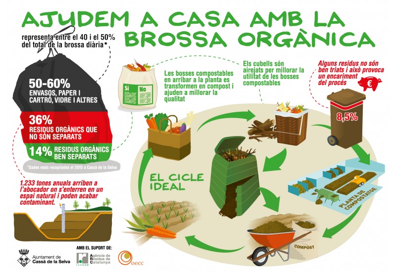 S'han entregat als alumnes d'infantil i primària dels centres educatius de Cassà 1.000 cubells airejats per utilitzar amb bosses compostables que serveixen per abocar-hi residus orgànics. Un 70% dels residus orgànics generats a Cassà no són separats correctament.