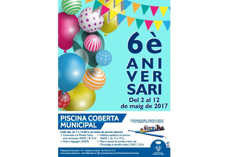 Fins al 12 de maig s'han programat un seguit d'actes, com ara una caminada a la Pineda Fosca, una macro aiguagim, inflafles aquàtics o una macro sessió de zumba. Cada dia hi ha jornada de portes obertes de 7 a 14h.