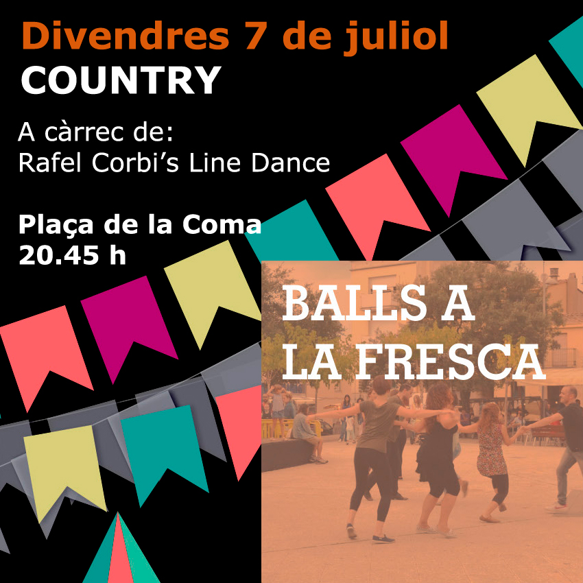 A diferència de les anteriors edicions, el cicle de balls a la fresca dels divendres es dedica exclusivament al Country. El regidor de Cultura, Josep Ferrer, ha explicat que aquest gènere musical és el que aplega més gent a la Plaça de la Coma.