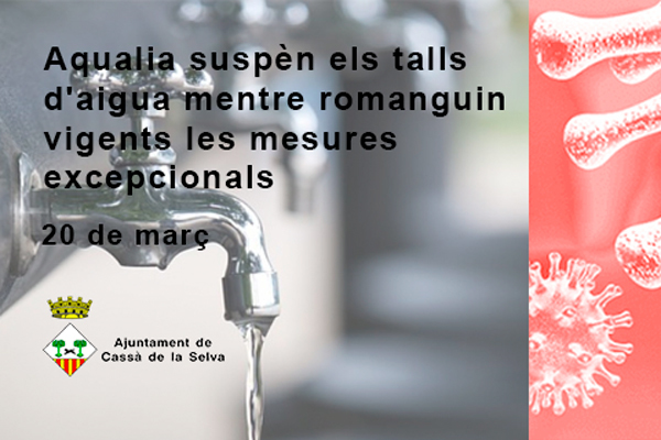 En una situació de normalitat, les empreses de el sector de la gestió de l'aigua contemplen la suspensió de subministrament com una eina d'actuació davant impagaments que no estiguin motivats per la falta de recursos econòmics per part de l'usuari. Però mentre duri aquesta excepcional situació, Aqualia paralitza qualsevol tall de subministrament d'aigua.