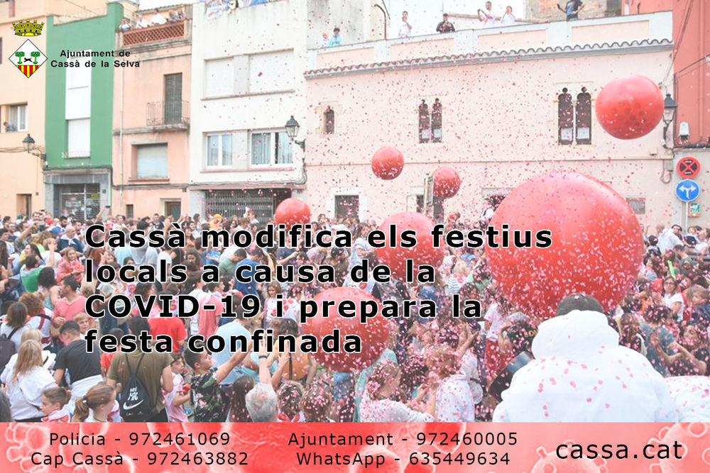 L’Ajuntament de Cassà de la Selva ha aprovat el trasllat dels dos dies festius locals del 8 i 9 de juny al dilluns 21 i dimarts 22 de setembre de l’any 2020. La mesura és excepcional i respon a les disposicions en matèria de salut pública adoptades per la Generalitat de Catalunya i el govern espanyol en el marc de l'estat d'alarma per la Covid-19.
