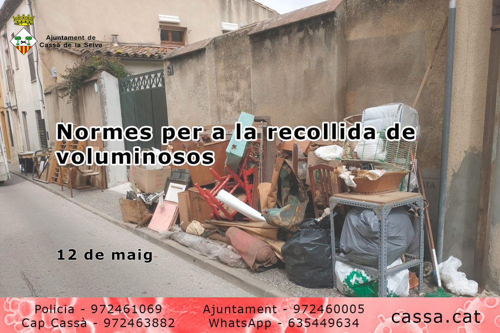Aquest servei gratuït de l'Ajuntament es presta per gestionar residus voluminosos que els usuaris particulars tenen dificultats per portar-los a la deixalleria de Cassà, i que, per tal de poder donar servei a tothom que ho necessiti, el volum es limita a 3 metres cúbics per avís. Fer-ne un mal ús pot representar multes a partir de 400 euros.