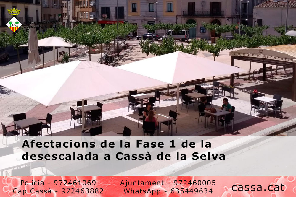 L’entrada de Cassà de la Selva a la Fase 1 del desconfinament, suposa el retorn a la normalitat en diversos aspectes, com ara la reobertura al públic o la posada en funcionament de diferents serveis: