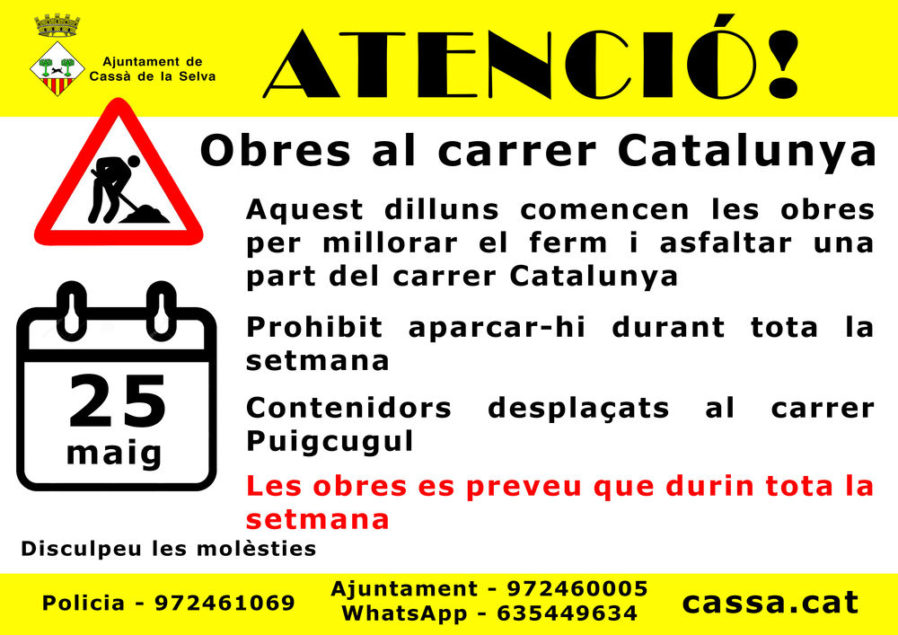 Aquests treballs, que es preveu que durin tota la setmana, també comporten el canvi provisional dels contenidors del carrer Catalunya, que es desplacen al carrer Puigcugul.