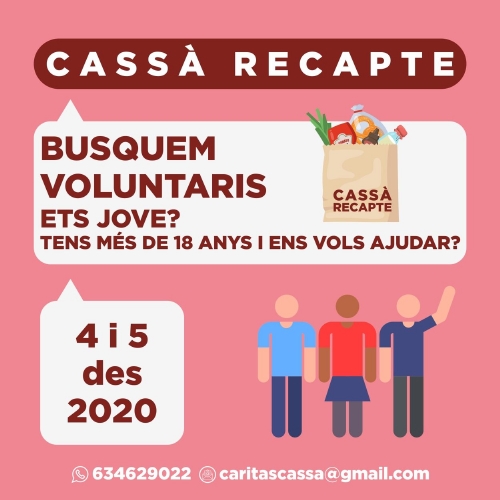La campanya Cassà Recapte recollirà productes bàsics, però també servirà per donar a conèixer la situació en què es troben les persones més necessitades, arran de la crisi econòmica i sanitària que estem vivint.