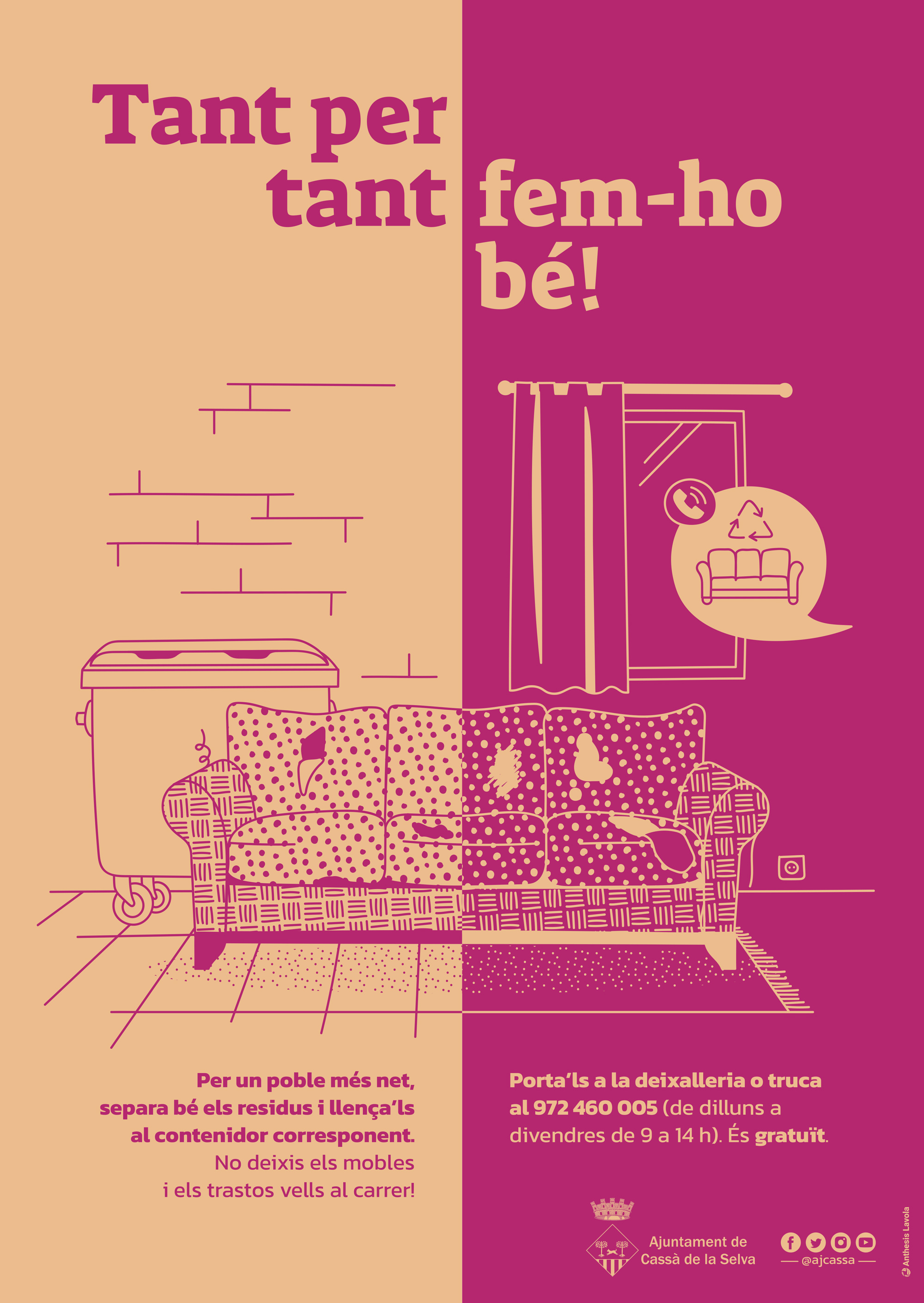 L’Ajuntament de Cassà de la Selva posa en marxa una nova campanya per conscienciar a la ciutadania dels avantatges i les necessitats de reciclar i reduir les deixalles que produïm cada dia. Des de l’ajuntament es posa de relleu que és molt difícil poder perseguir als ciutadans incívics només amb sancions.