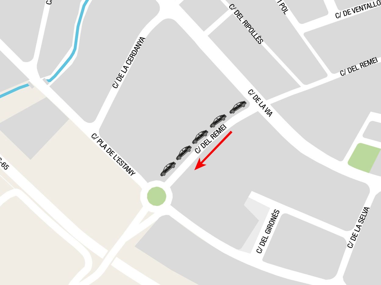 Es tracta del tram comprès entre els carrers de la Via i Pla de l’Estany, on el sentit de la circulació serà des del carrer de la Via, fins a la rotonda del carrer Pla de l’Estany.