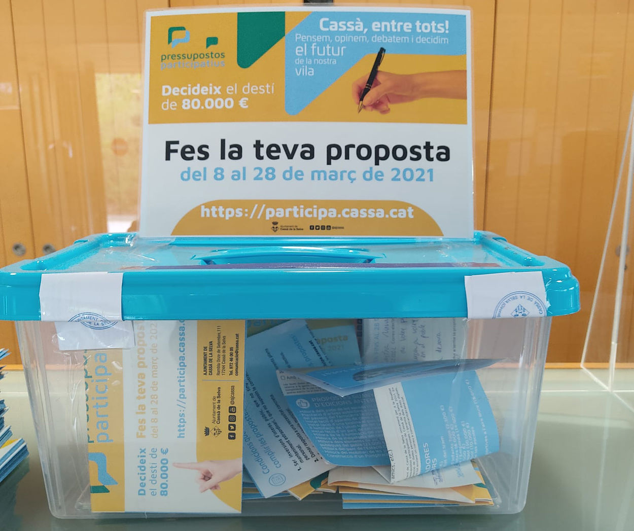 El passat 28 de març va finalitzar el termini per presentar propostes per als Pressupostos Participatius d’aquest 2021. Enguany s’han rebut 172 propostes, 143 en línia i 29 dipositades a les urnes ubicades a l’Ajuntament, al Centre Cultural Sala Galà i a la Piscina Coberta Municipal.