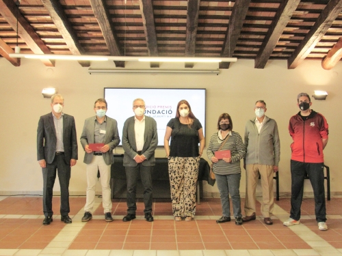 D’esquerra a dreta: Josep Vilanova, Gerent de Joaquim Albertí; Dr. Joan Brunet, Cap del servei d'oncologia mèdica de l'ICO Girona i investigador de l'IDIBGI; Xavier Albertí, President de la Fundació Joaquim Albertí; Judit Xiberta, treballadora de Joaquim Albertí, S.A; Teresa Vila, Presidenta de l’AGS; Josep Cubarsí treballador de Joaquim Albertí, S.A; i Eduard Julià, membre del Comitè d’empresa.