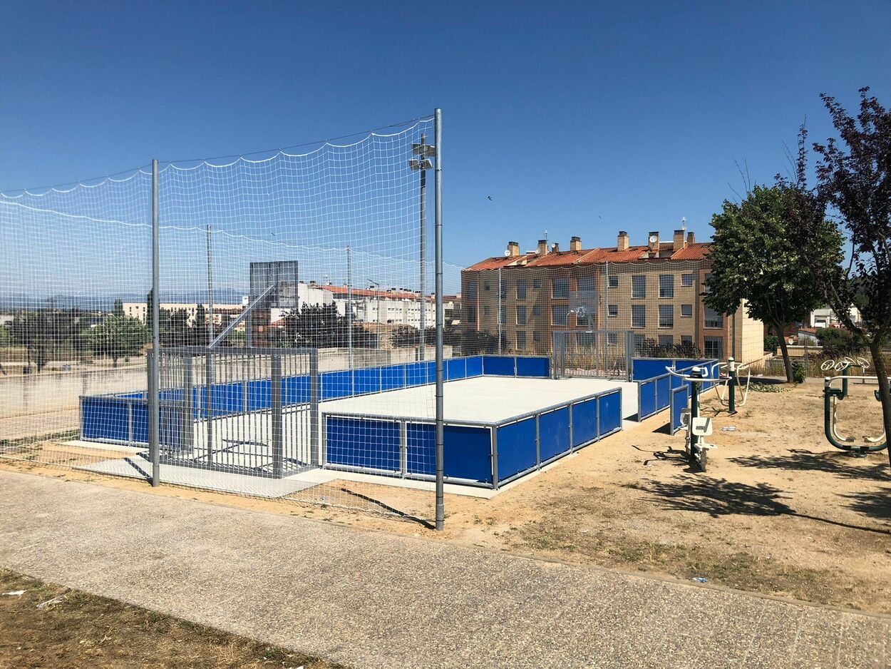 És una pista de formigó de 20x20 m, amb porteries de bàsquet i de futbol sala, amb un tancament metàl•lic perimetral i unes xarxes per evitar que les pilotes vagin a la via pública. Amb aquest nou espai lúdic-esportiu es donen per finalitzats el conjunt dels 3 projectes que hi havia previstos com a espais pavimentats per a diferents pràctiques esportives, incloent-hi aquesta pista, la pista del costat de l'Estació i el circuit de pumptruck a la zona esportiva que va ser el projecte guanyador de 2020 dels pressupostos participatius.