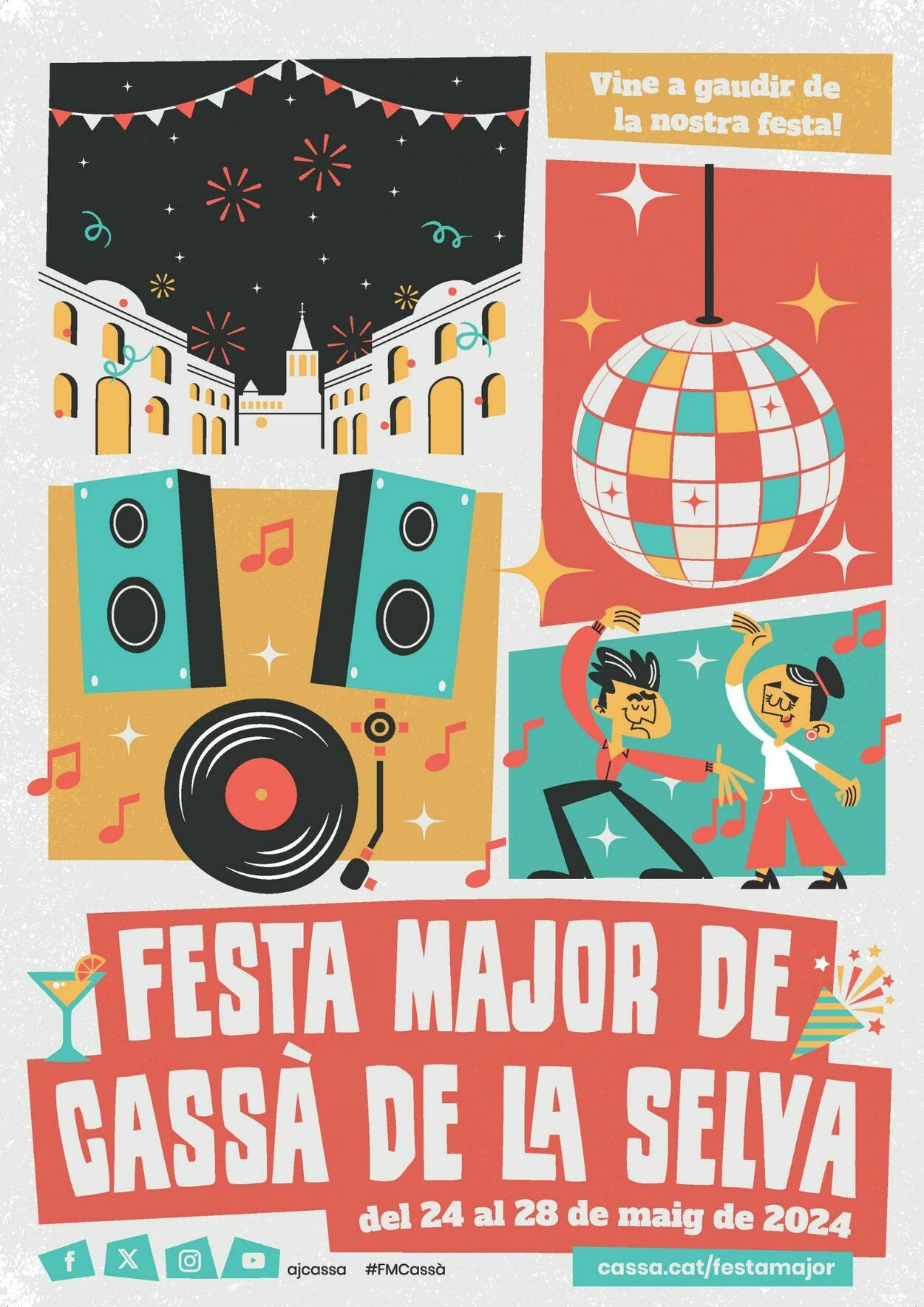 Us presentem el cartell de la Festa Major de Cassà de 2024, que enguany està inspirat en les discoteques que havien existit al poble. La festa tindrà lloc del 24 al 28 de maig però, ben aviat podreu conèixer tota la programació, que us desvetllarem el pròxim divendres, 10 de maig en un acte de presentació del programa, amb les regidories de les àrees que organitzen la Festa Major.