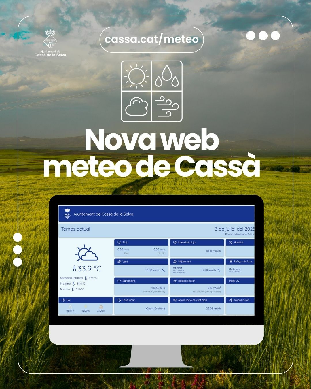 Tota aquesta informació, està publicada en la pàgina web de cassa.cat/meteo. Aquesta pàgina, que s’ha redissenyat per afegir-hi la nova informació, podem consultar-hi: